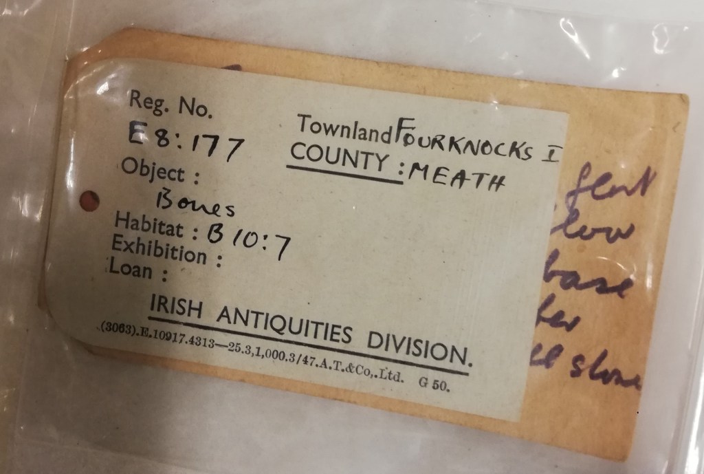 In December 2020, PTP was able to access the storage facilities of the National Museum of Ireland to assess our target Irish sites. Human remains and animal remains are stored separately, so this visit focused on assessing human burials from passage tomb and contemporary sites. As we’ve been discovering, this initial assessment or ‘feasibility’ step is crucial, as many key sites were excavated in the 19th and early 20th centuries with different recording standards and priorities. Full osteological and zooarchaeological analysis may not have been undertaken at the time of excavation and this presents both opportunities and challenges. Another important consideration is the destructive nature of much of PTP’s planned analysis and the need to balance this against a finite archaeological resource. We came away from the NMI with a good appreciation of the various archives and their condition, ready to submit a refined sample list and application to alter/export the material in 2021.